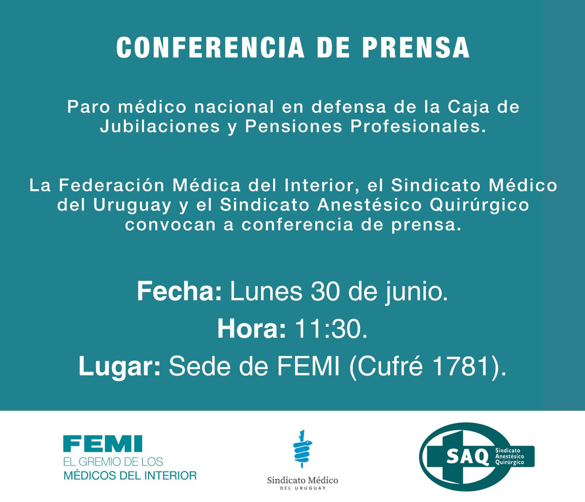 A las 11:30 del lunes habrá una conferencia de prensa del sindicatos médicos y el Sindicato Anestésico Quirúrgico por la situación.