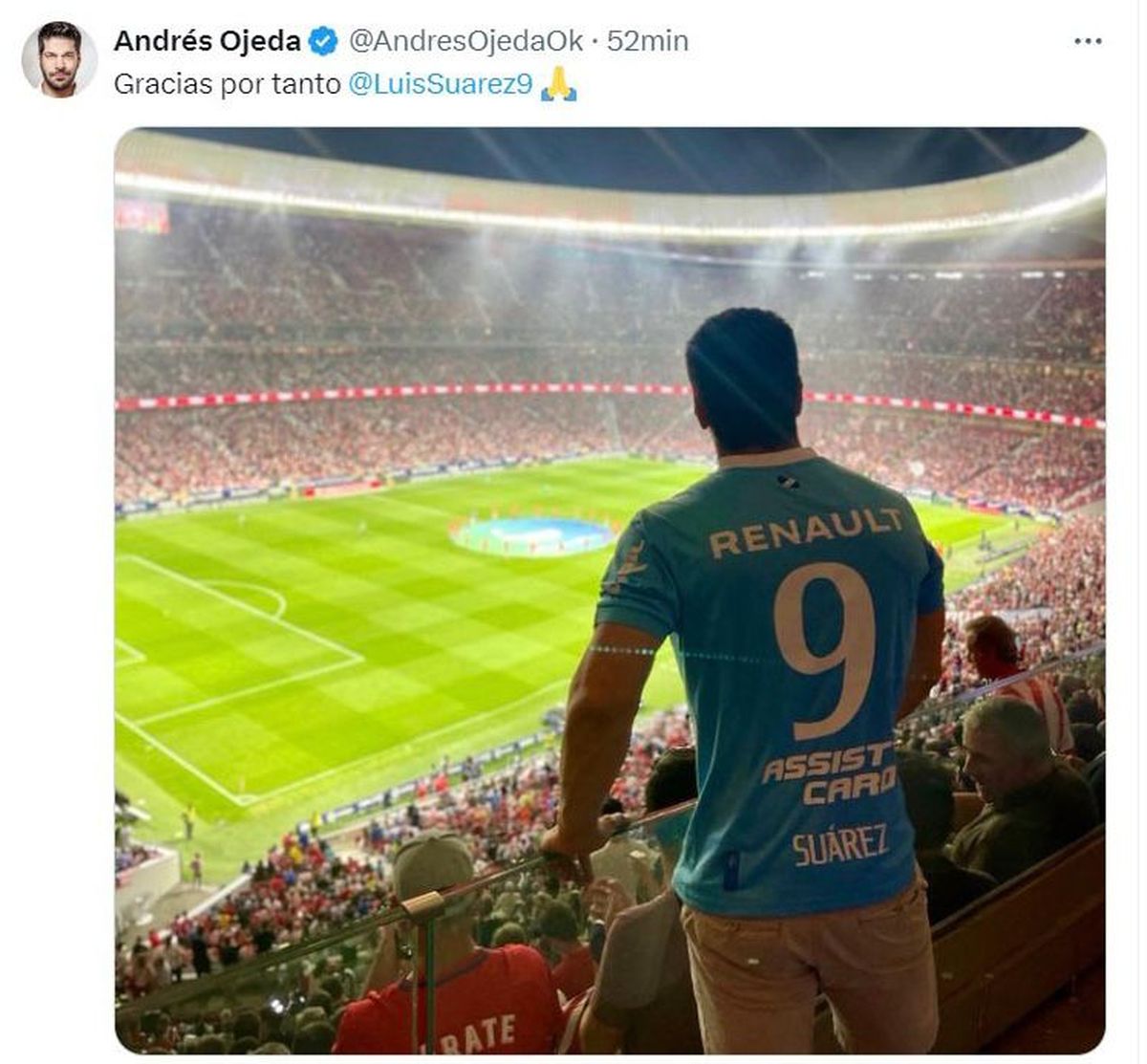 El senador del Frente Amplio, Óscar Andrade, realizó una publicación a través de su cuenta de X con una foto junto a Luis Suárez. "Gracias por tanto, el goleador de toda la historia".