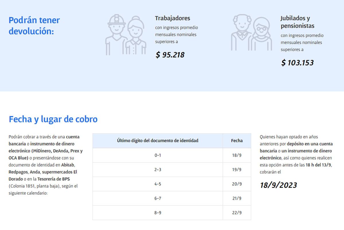 Es el Banco de Previsión Social (BPS) el que se encarga de la devolución y paga a los trabajadores y jubilados el excedente de sus aportes durante el último año.