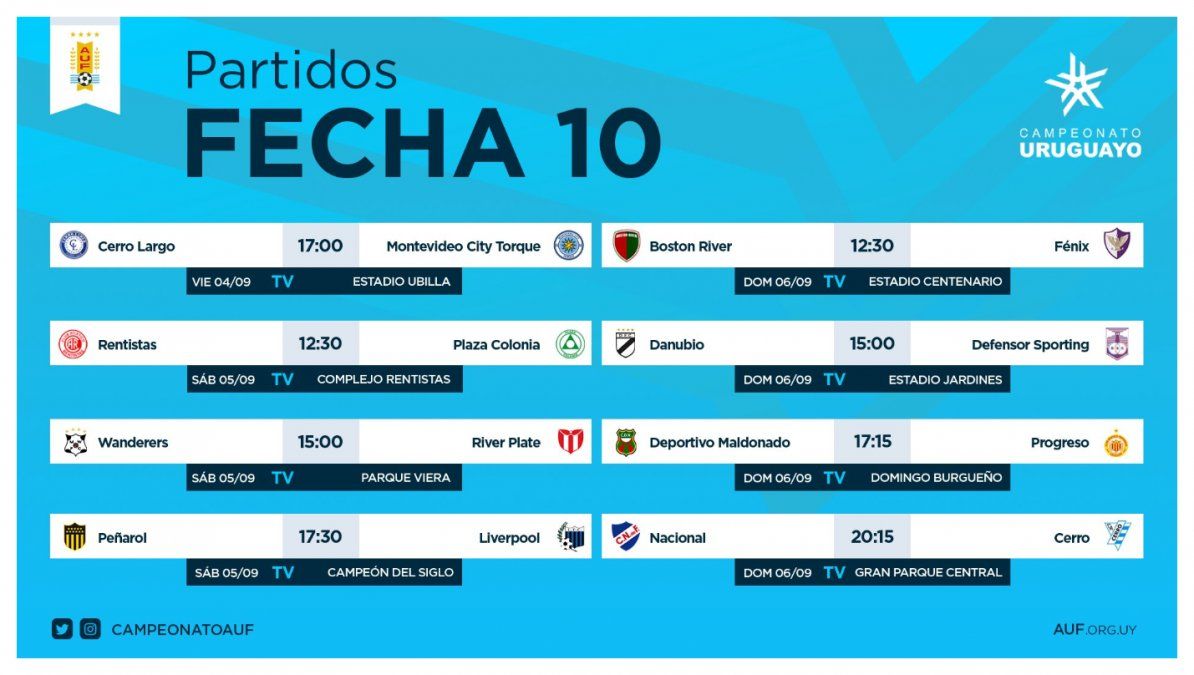 Con Cerro Largo- City Torque en el Estadio Ubilla se da comienzo este viernes a la décima fecha del Torneo Apertura del fútbol uruguayo.