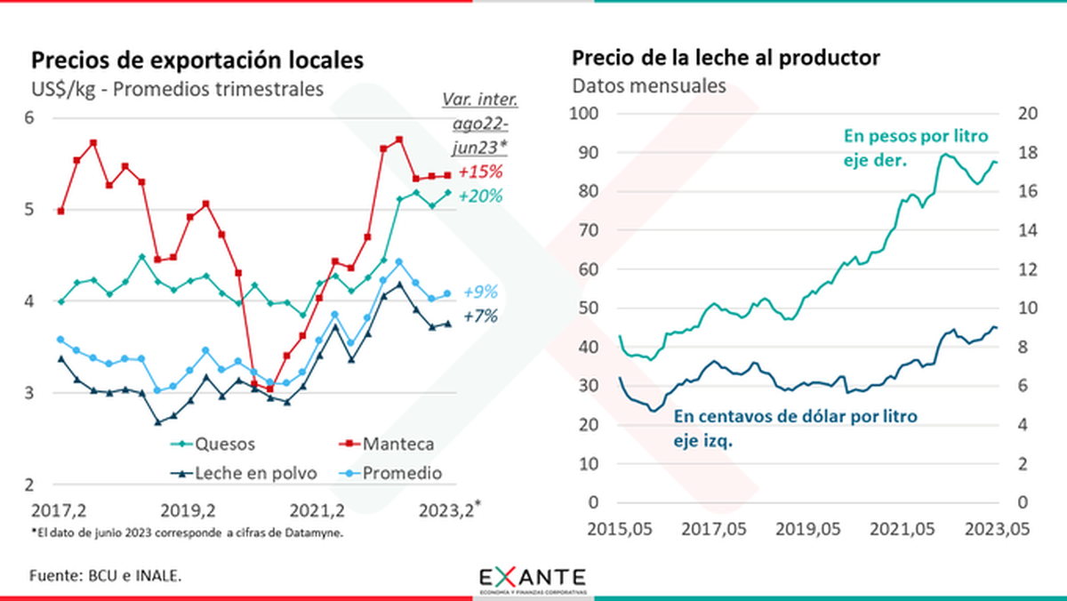 En la lechería, los precios de exportación de la industria local se mantuvieron firmes en el último ciclo y permitieron sostener altos precios de la leche al productor.