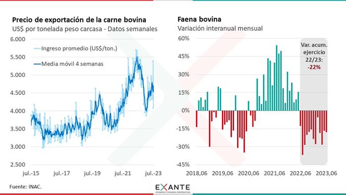 A nivel del complejo cárnico, el enfriamiento de la demanda externa (sobre todo desde China) se reflejó en un ajuste significativo de los precios de la carne y en una contracción marcada de la faena desde el comienzo del ejercicio.