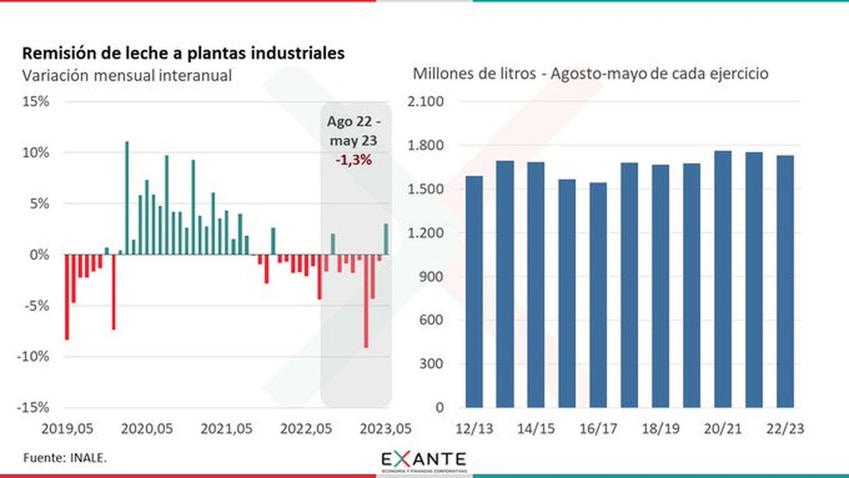 La remisión de leche a plantas industriales tendió a caer, con un impacto importante de la sequía en el verano. Sin embargo, en el conjunto del ciclo la baja habría sido acotada