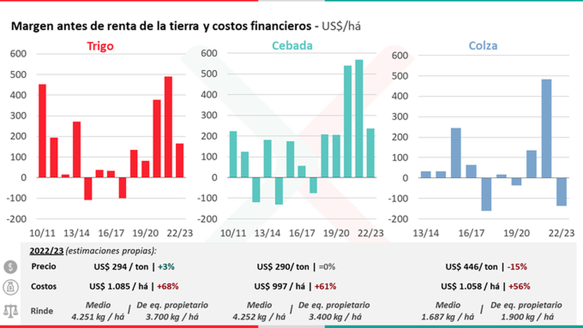 En definitiva, el ejercicio agropecuario 2022/2023 cerró con un deterioro importante de los márgenes en todas las principales actividades, en un marco de costos altos y condiciones climáticas muy adversas.