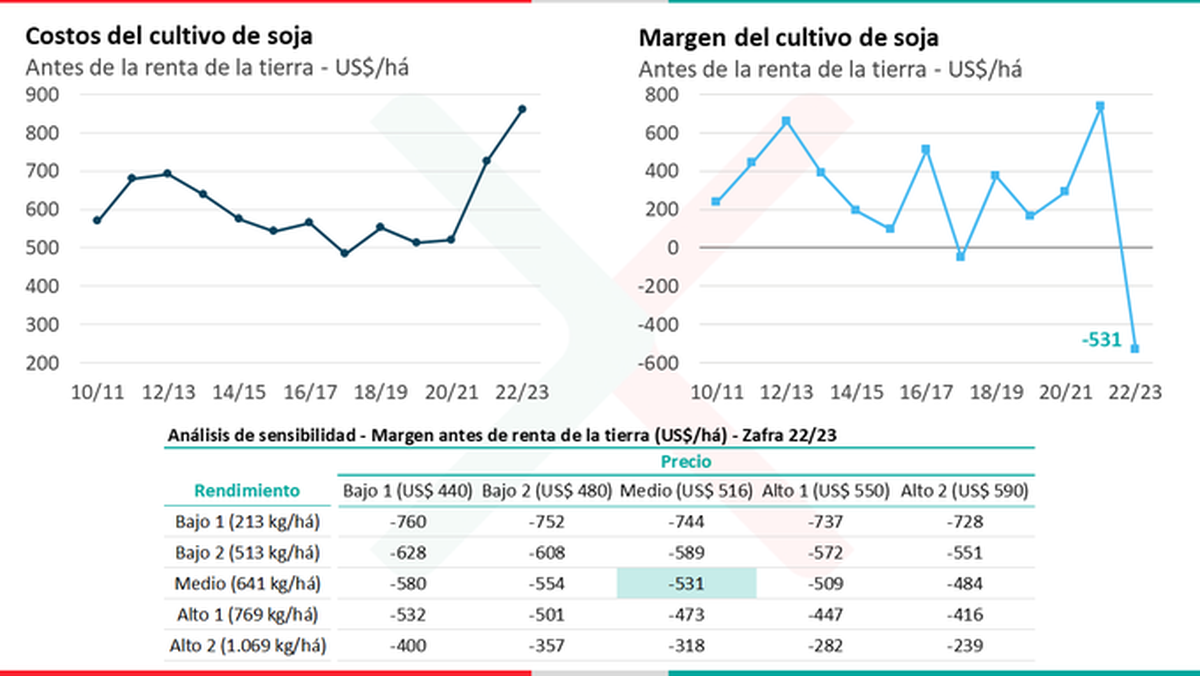 Aún con precios superiores a USD 500 la tonelada en promedio, la combinación de muy altos costos y rendimientos mínimos habría dejado pérdidas abultadas en el cultivo de soja.