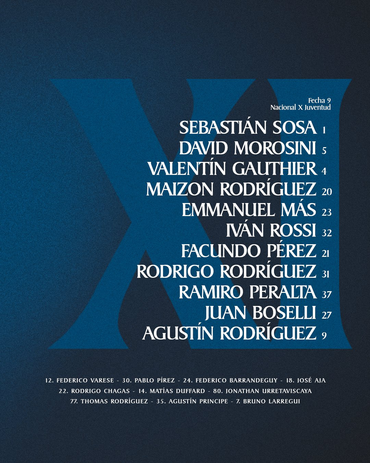 Los futbolistas titulares en Juventud.