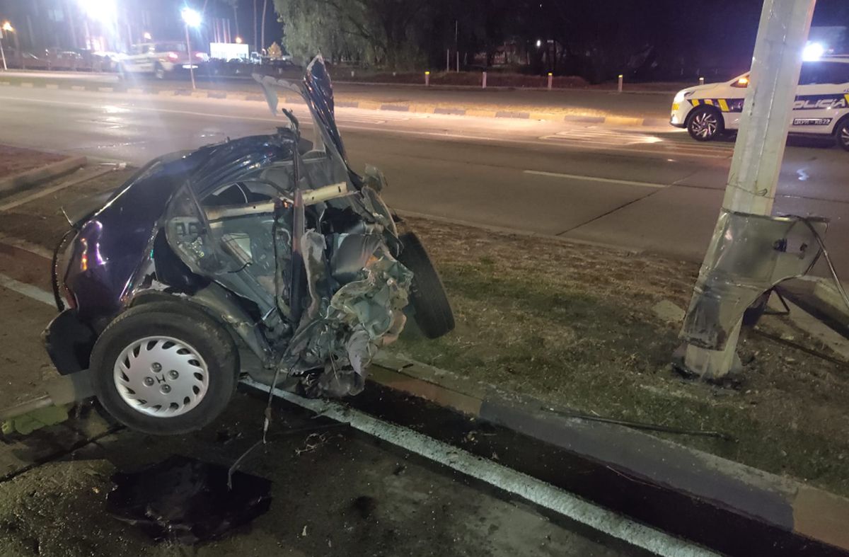 Conductor de auto chocó contra una columna en Avenida Italia y sufrió traumatismo grave