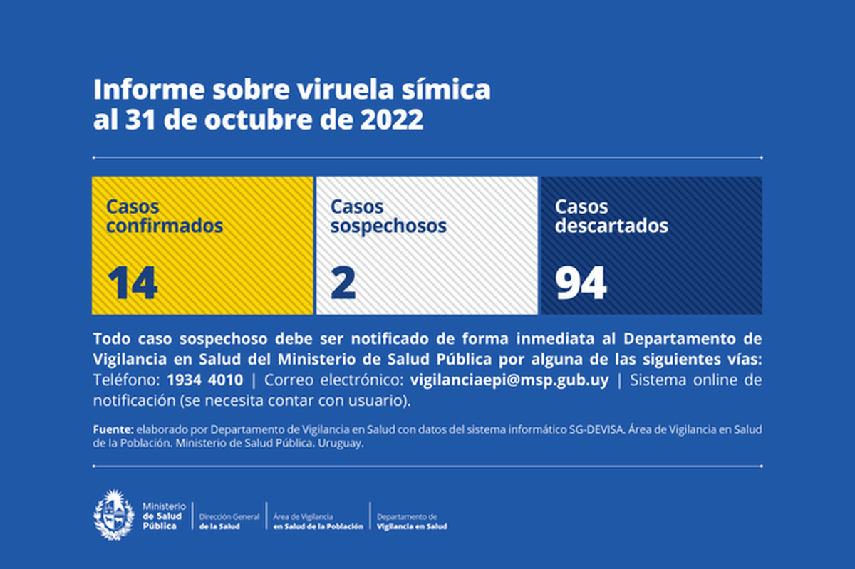 El Ministerio de Salud Pública confirmó un caso nuevo de viruela del mono en Uruguay. Así, suman 14 pacientes con la enfermedad detectada en el país.