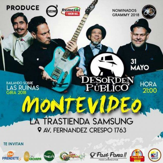 La banda se presenta en La Trastienda en el marco de su gira 2018 Bailando Sobre Las Ruinas.Entradas a la venta en Red UTS, Redpagos y Tienda inglesa.