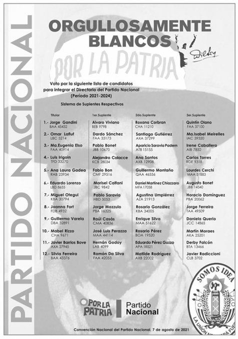 Los convencionales tendrán dos listas para votar. Por un lado la que presentó el senador Jorge Gandini, líder de “Por la Patria”, y por otro la lista que reúne al resto de los sectores del Partido Nacional.