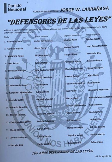 Por entonces estaba en discusión la conformación de una lista única, conformada en acuerdo por todos los sectores blancos.