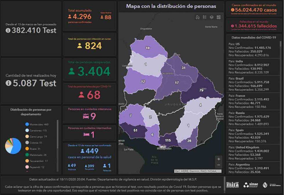 Coronavirus en Uruguay: récord de test procesados y 88 casos nuevos