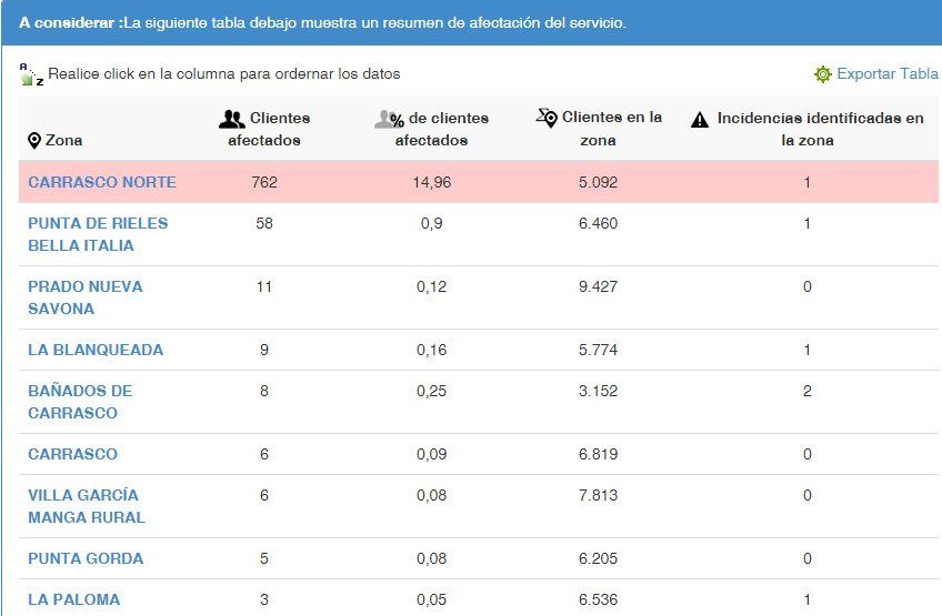 Un corte de luz afecta al barrio Carrasco Norte. Según datos publicados por UTE en su sitio web son 762 los clientes afectados, lo que representa un 14.96% del total de clientes de la zona.