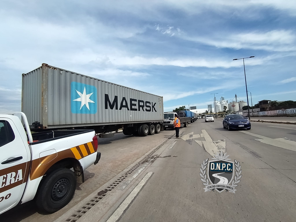 La manifestación en la entrada al puerto se realiza con cortes cada 15 minutos, señala Caminera, que canaliza el tránsito en el lugar para evitar aglomeraciones y trancazos demasiado largos.