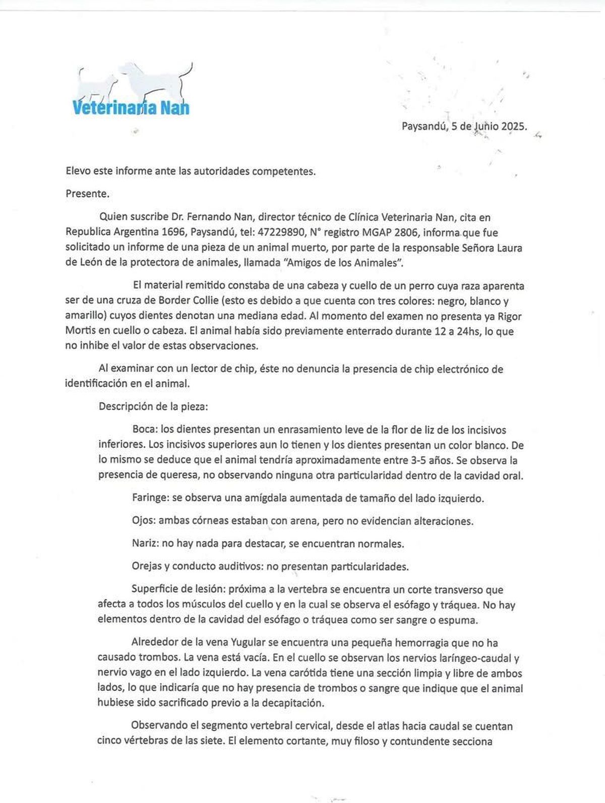 "El informe veterinario confirmó lo impensable: la perra fue decapitada viva, víctima de un acto intencional, brutal y de absoluta crueldad".