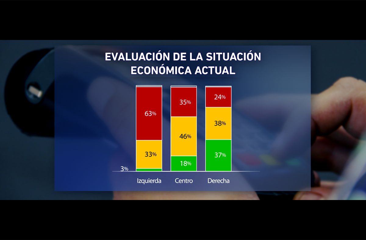 Los juicios sobre cómo funciona la economía del país están condicionados por las orientaciones ideológicas de las personas. Entre las personas que hoy se identifican como de “izquierda” o “centro izquierda” los juicios son muy críticos: 3% califica la situación actual como positiva y 63% como negativa. Entre los de “derecha” y “centro derecha” el balance es inverso: 37% a 24%, mientras que entre los de “centro” las percepciones son de balance negativo, pero menos intensas que entre los de izquierda.