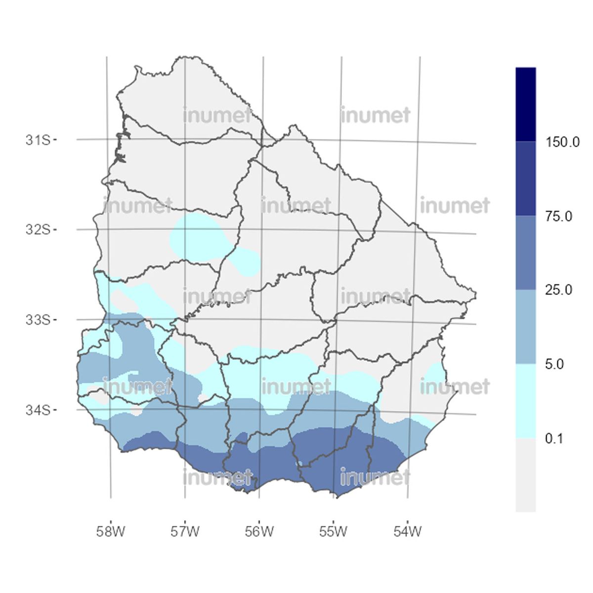 La cuenca del Atlántico y el Río de la Plata fue la que más precipitaciones recibió, con un promedio de 35,5 mm en las últimas horas y un pico máximo de 67 en el Prado, Montevideo.