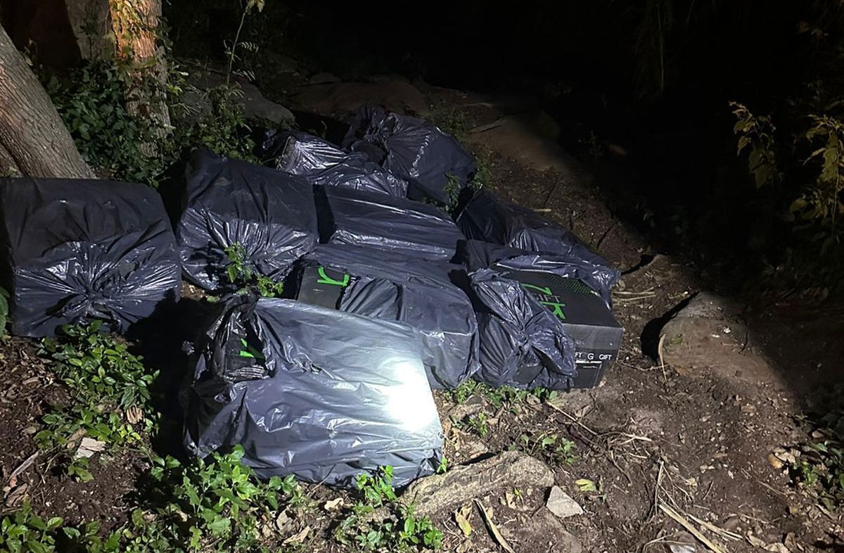 Los efectivos incautaron nueve bultos que escondían grandes cajas de cigarrillos de la marca Gift, con miles de unidades adentro.