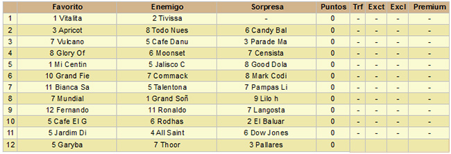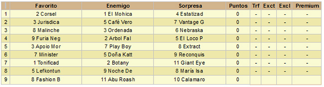 El sábado tendremos doce carreras comenzando a las 15:55, finalizando a las 20:30. La base de la jornada es el clásico Lavalleja para potrillos sobre 1300 mts, donde Clifford tratará de seguir el mando de la nueva generación.