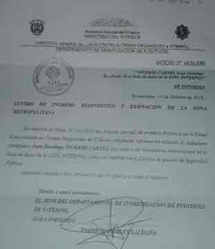 Según supo Subrayado, en enero de este año Interpool realizó la comunicación correspondiente y estaba pronto para cumplir con el traslado de Viveros Cartes a Paraguay, pero el juez de ejecución que debía dar la orden en Asunción no estaba enterado.