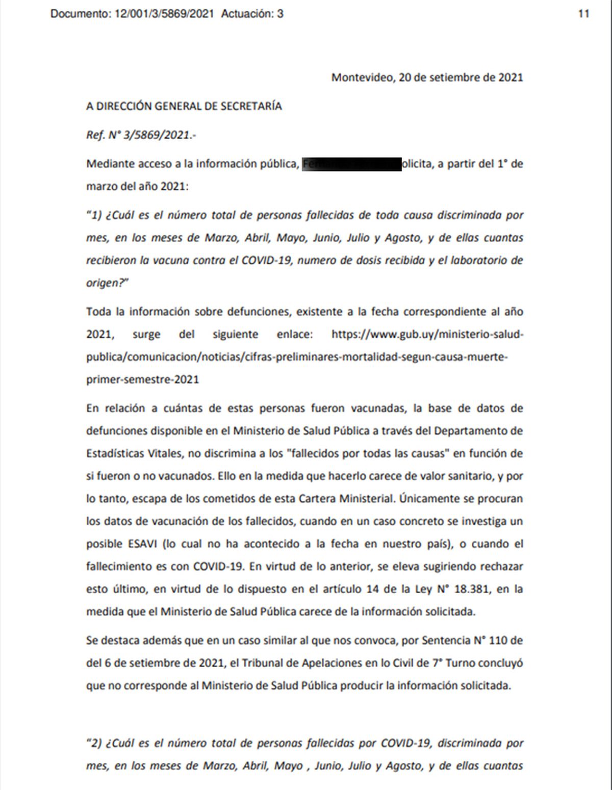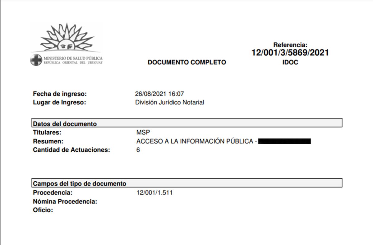 Estos datos surgen de un pedido de acceso a la información pública realizado en agosto por particulares, y que el Ministerio de Salud Pública (MSP) respondió el 20 de setiembre.