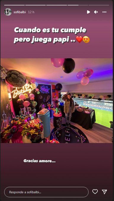 Sofía fue quien compartió en una historia de Instagram una foto donde se ve a Delfina en un palco del estadio decorado especialmente para la ocasión.