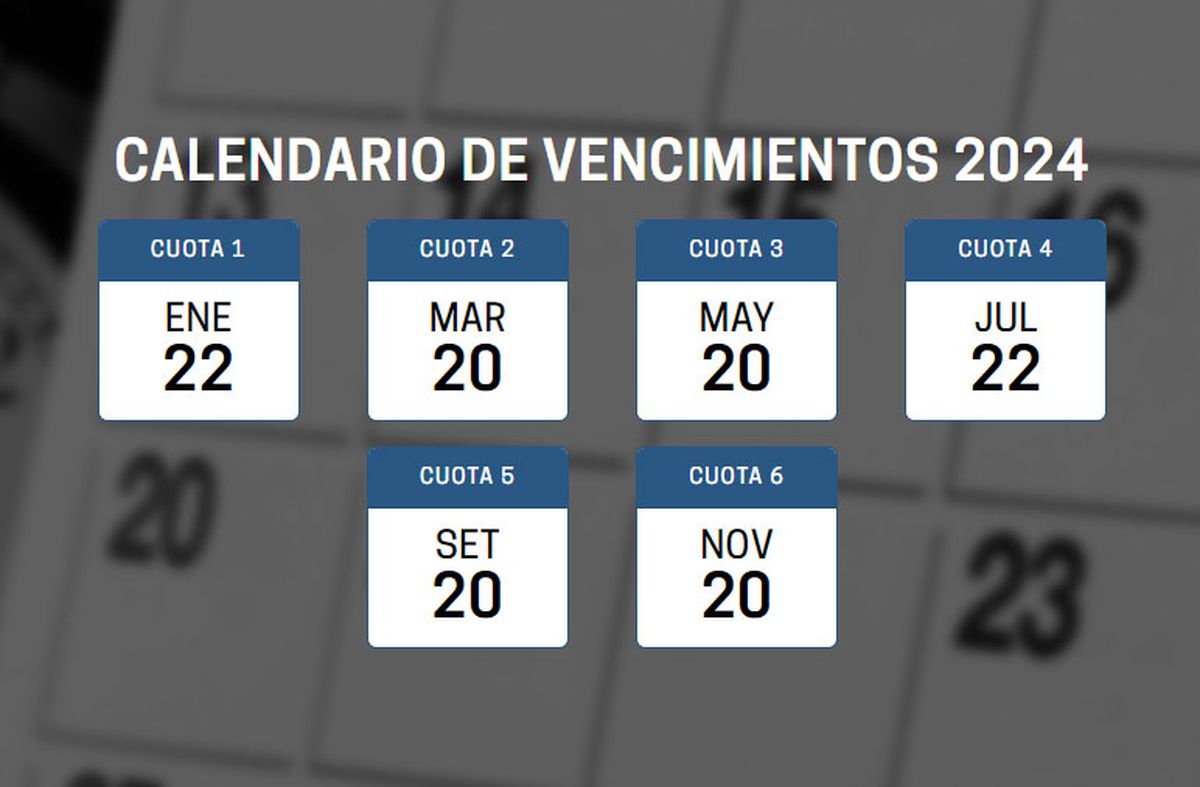 La primera cuota vence el 22 de enero. Si se paga todo el año ahora hay un descuento del 20%. Por pago en fecha de cada cuota, el descuento es de 10%.