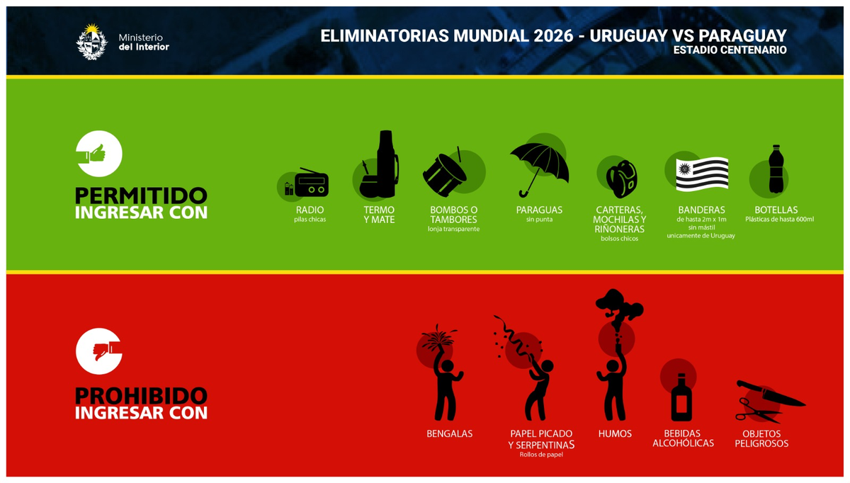 La Policía no permitirá ingresar a hinchas que usen camisetas de otras selecciones o clubes que no sean Uruguay y Paraguay. Mirá qué otros detalles a tener en cuenta.