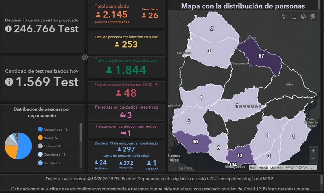 El director de Salud de Rivera Carlos Sarriés informó que se detectaron dos nuevos focos de coronavirus dentro del brote de Covid-19 que tiene el departamento, con 57 casos activos según el último informe del Sistema Nacional de Emergencias (SINAE) publicado el domingo.