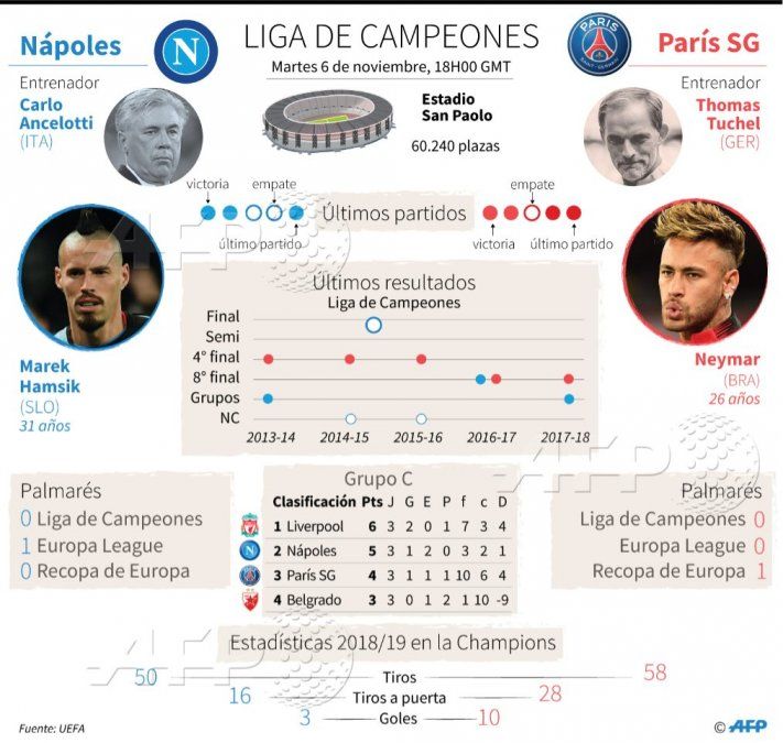 Este martes arrancará la cuarta fecha de la Liga de Campeones en la que uno de los grandes aspirantes al título, el París SG, corre el riesgo de quedar casi descartado si no gana en Nápoles, mientras que el Atlético, anfitrión de la final, querrá borrar la afrenta del 4-0 encajado en Dortmund.