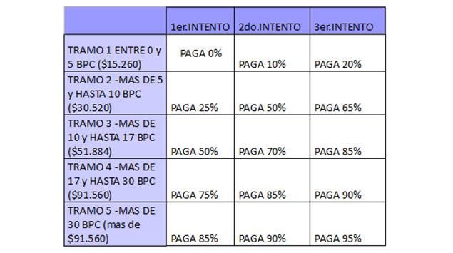 a) Primer tramo: ingresos per cápita promedio de la pareja menores o iguales a 5 Bases de Prestaciones y Contribuciones (BPC) ($15.260)*