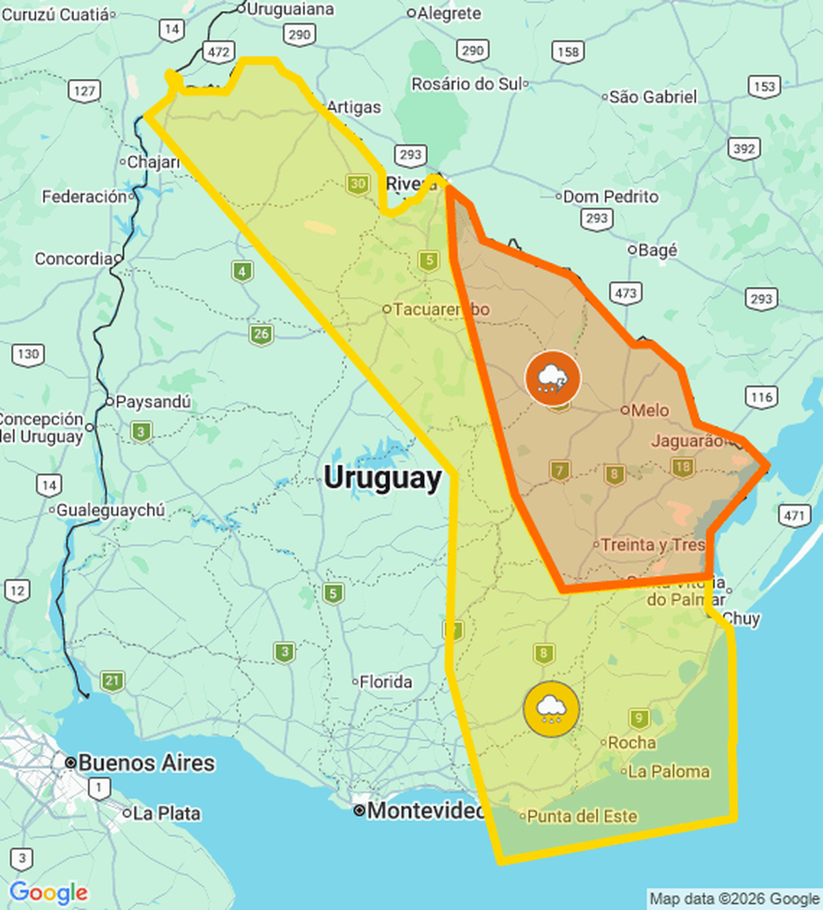 Mirá las localidades afectadas por la advertencia amarilla.