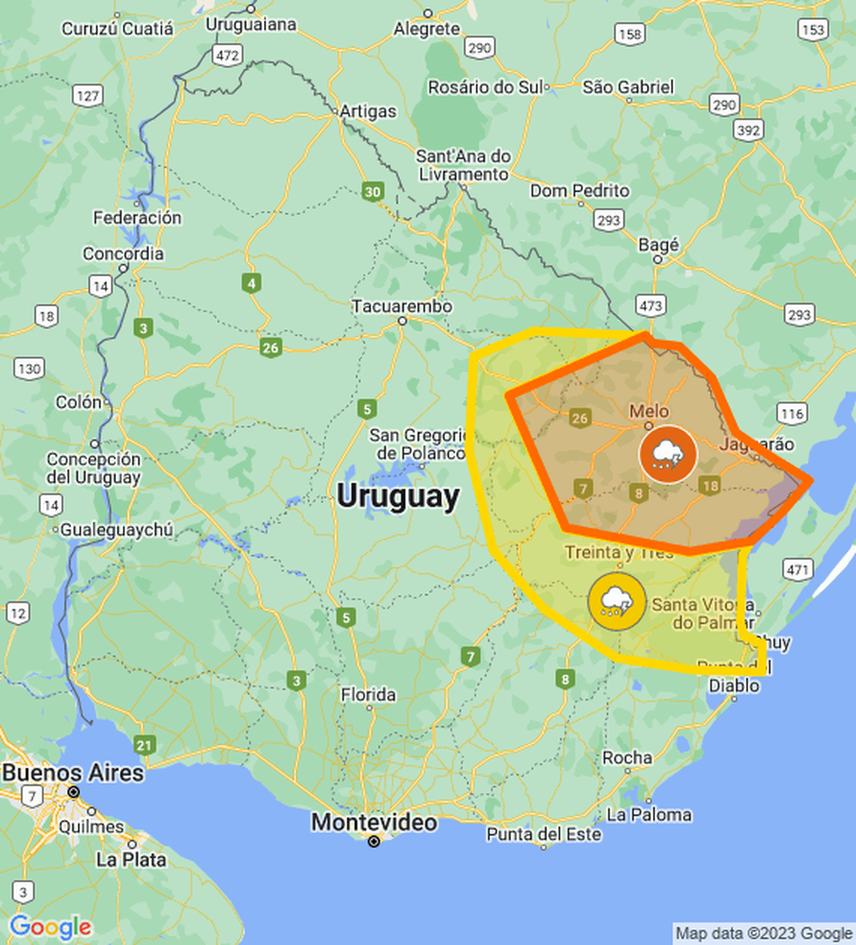 Inumet actualizó la advertencia por persistencia de tormentas puntualmente fuertes y lluvias abundantes