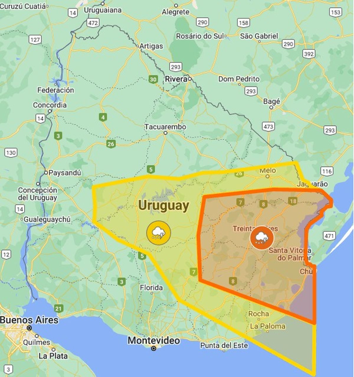 Inumet emitió advertencias naranja y amarilla por persistencia de tormentas y lluvias. Mirá el mapa con las zonas más afectadas.