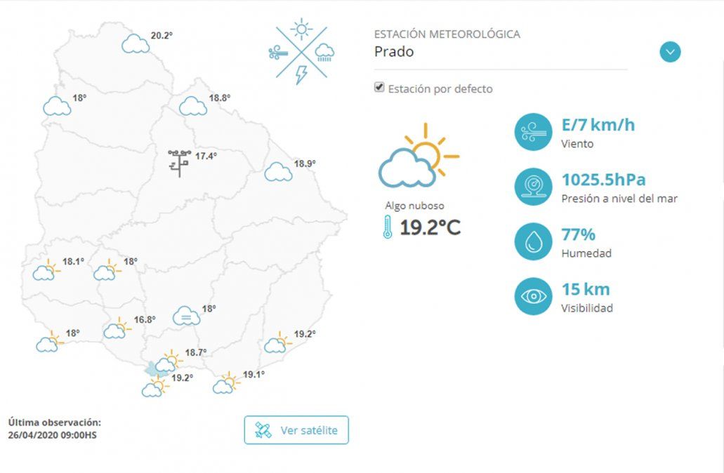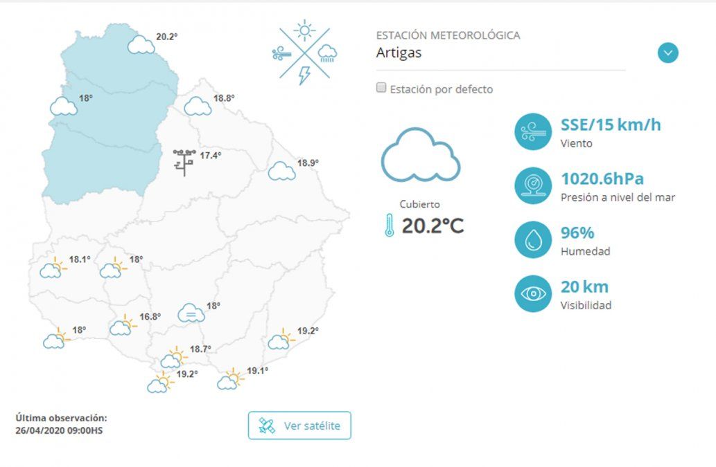 En el norte está cubierto con viento del SSE/15km/h y se esperan lluvias durante la mañana. La humedad 96%, y la visibilidad está en el entorno de los 20km. La temperatura mínima registrada fue de 17º y la máxima será de 29º.
