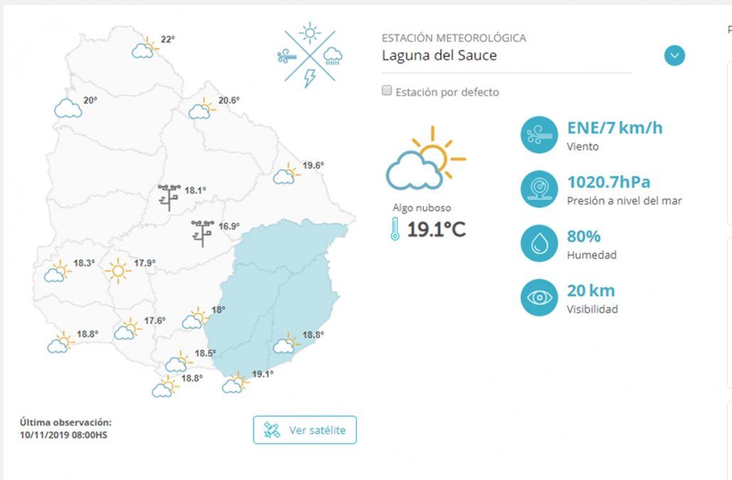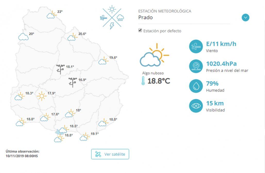 Según el Instituto Uruguayo de Meteorología (INUMET) en el sur el cielo estará claro a algo nuboso, con períodos de nuboso, tornándose algo nuboso hacia la tarde. La mínima 16º y la máxima alcanzará 22º, mientras la humedad se mantendrá en el entorno de 76%.