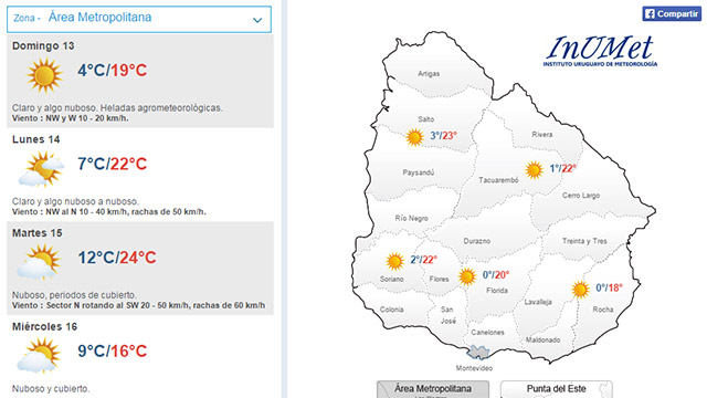 Para este domingo Meteorología prevé una máxima de 19ºC en el área metropolitana y una mínima de 4ºC.
