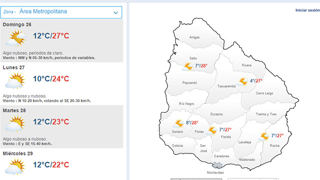 Según el Instituto de Meteorología para este domingo se espera una temperatura máxima de 27ºC en el área metropolitana y una mínima de 12ºC.