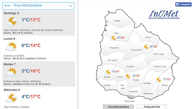 Domingo con mínima de 1ºC en el área metropolitana