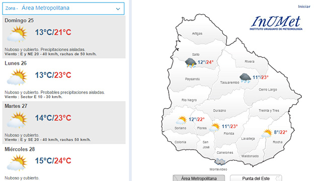 La máxima esperada es de 23ºC en el área metropolitana y la mínima de 13ºC.