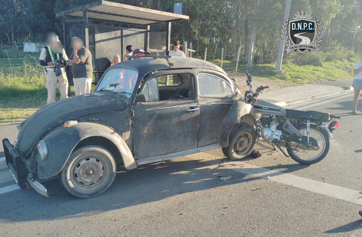 Policía Caminera informó que el auto esperaba el cambio de luz en el semáforo cuando fue impactado de atrás por la moto.