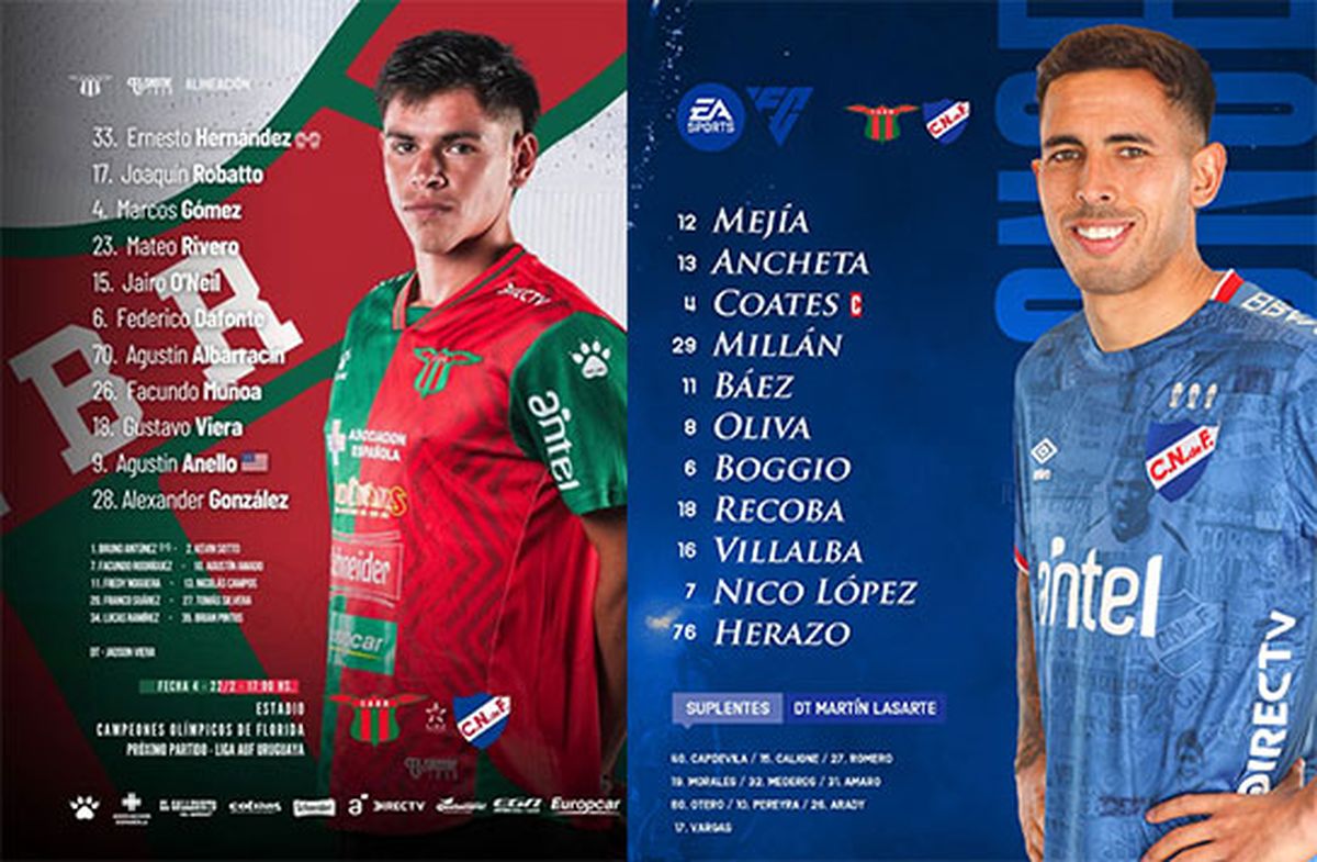 Así formaron desde el inicio los equipos de Jadson Viera y el de Martín Lasarte este sábado: