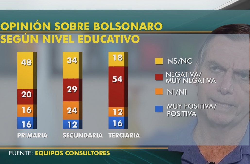 La opinión sobre Bolsonaro varía de acuerdo al nivel educativo.