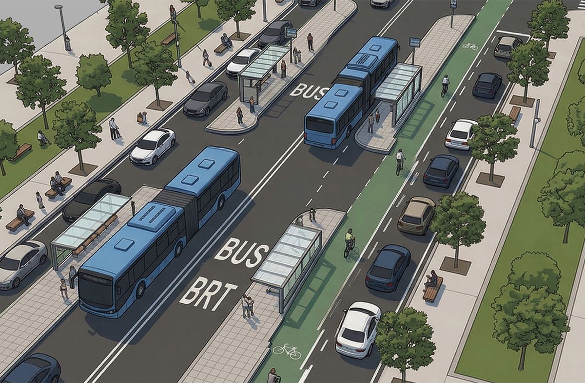 En resumen, troncal central exclusivo para ómnibus con paradas y refugios, una ciclovía al costado (en la senda de ingreso al Centro) y un carril para vehículos particulares a cada lado de 18 de Julio.