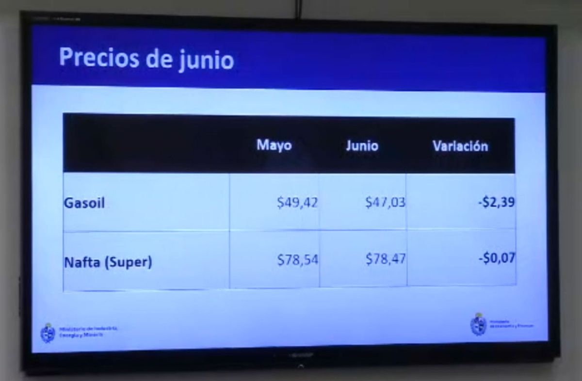 El gasoil baja en junio 2,39 pesos y la nafta 0,07 pesos, anunció el gobierno; el supergás se mantiene