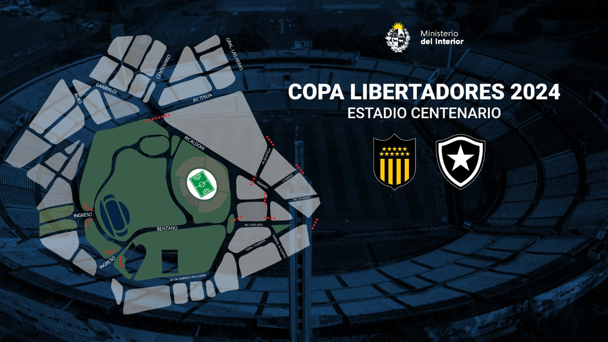 El Ministerio del Interior difundió el operativo de seguridad para el partido entre Peñarol y Botafogo, que ese martes se cambió de escenario del Campeón del Siglo para el Centenario. Trabajan 920 policías.