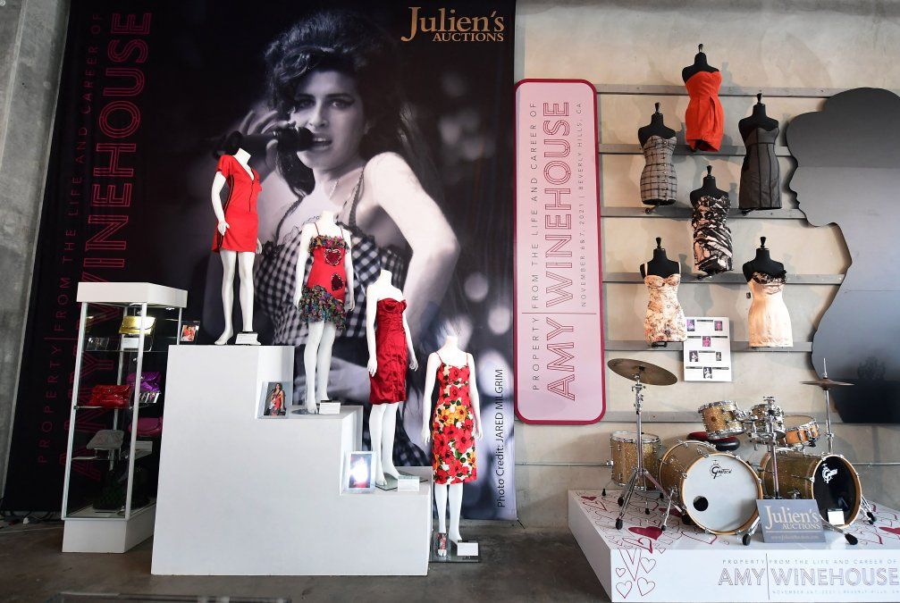 El vestido fue la principal pieza de una colección de 800 objetos personales que van desde brasieres y DVD hasta libros y maquillaje, vendidos por los padres de Winehouse, Mitch and Janis.