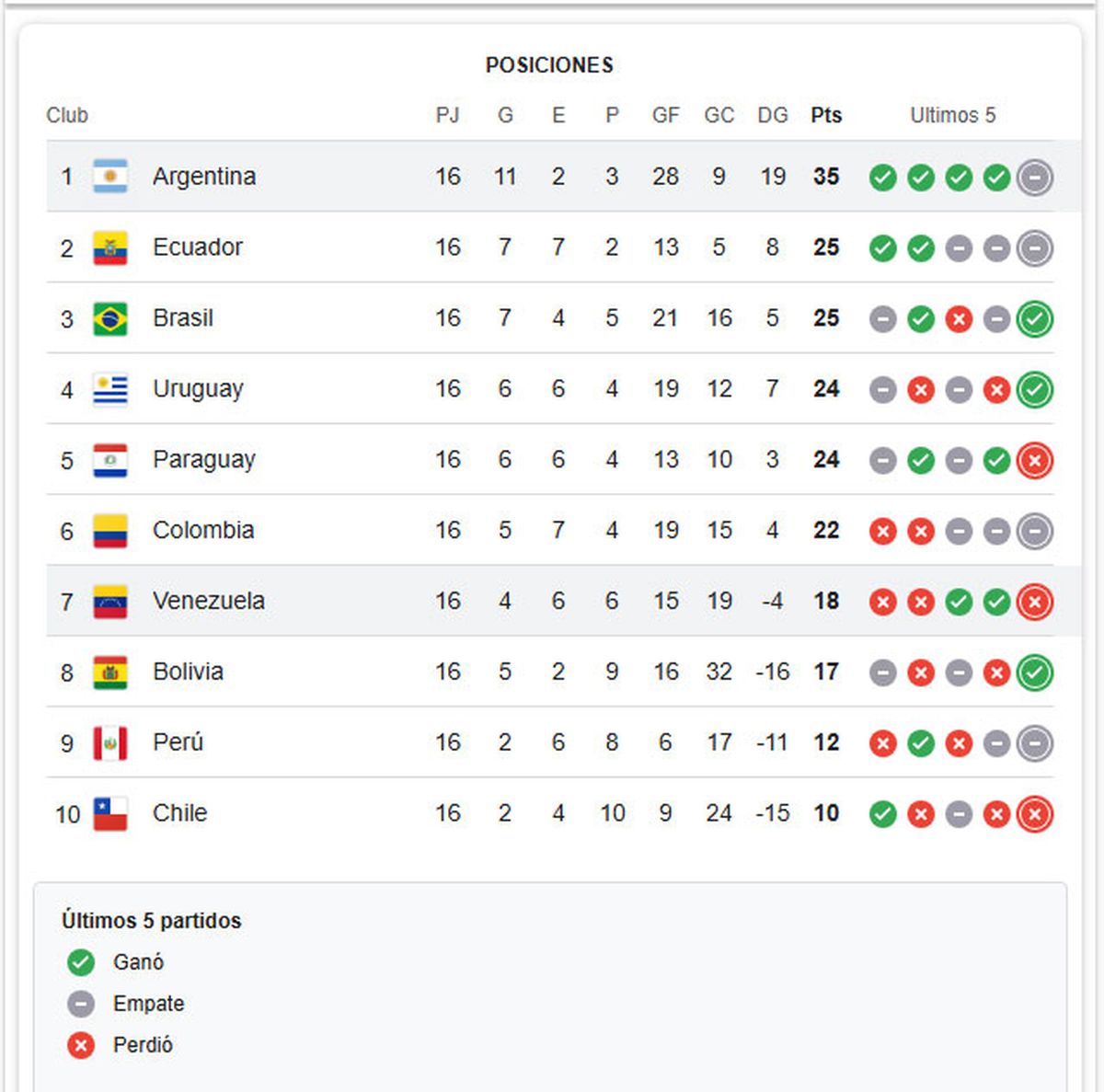 La Vinotinto tiene un mano a mano con Bolivia (17 puntos), que busca alcanzar el mismo puesto y tener así una última chance de clasificar al Mundial del año que viene en Estados Unidos, Canadá y México.