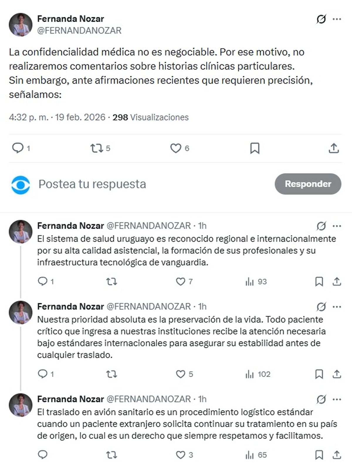 "Nuestra prioridad absoluta es la preservación de la vida. Todo paciente crítico que ingresa a nuestras instituciones recibe la atención necesaria bajo estándares internacionales para asegurar su estabilidad antes de cualquier traslado", agregó.