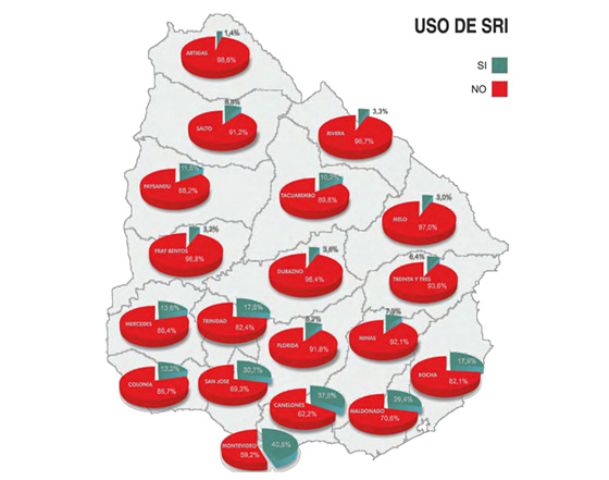 Uno de los mapas publicados este martes, muestra la baja utilización de los SRI en todo el país.